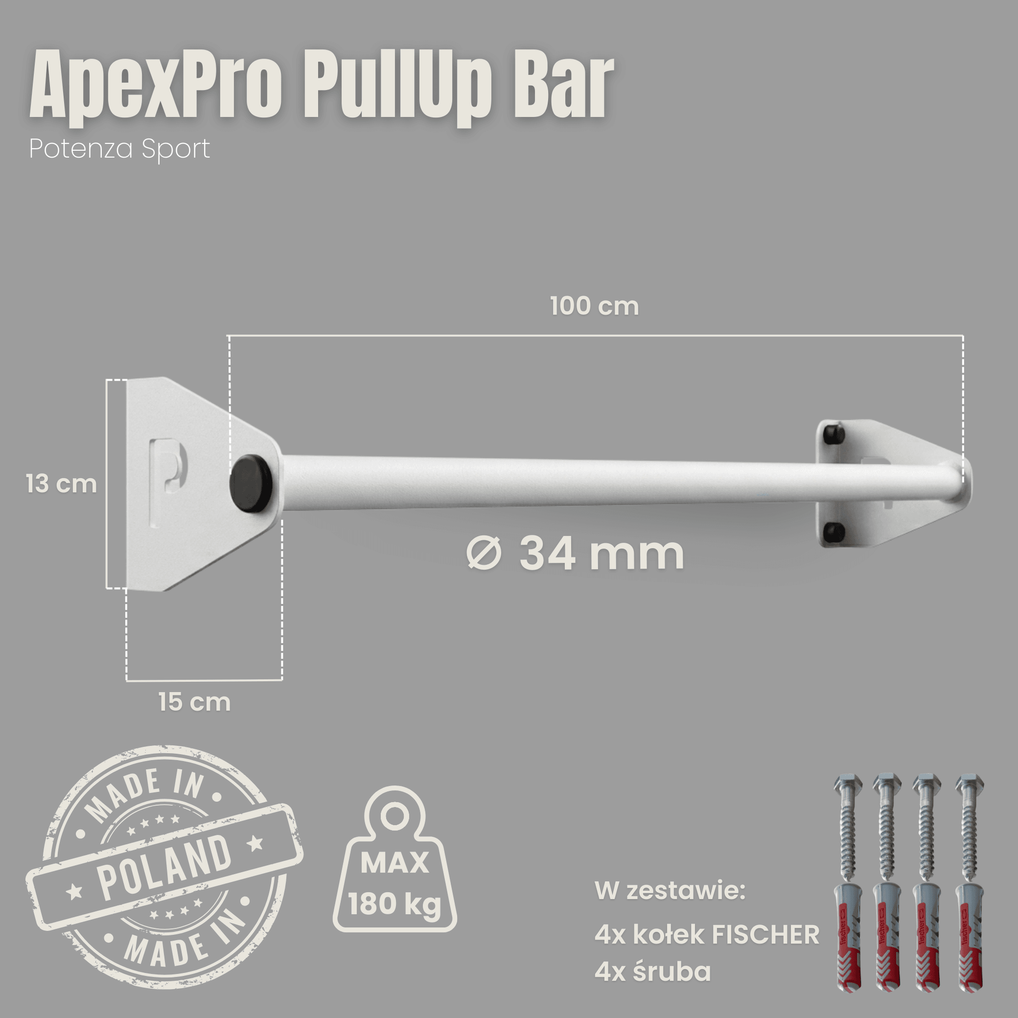 Drążek do podciągania ścienny ApexPro PullUp Bar biały + KOŁKI
