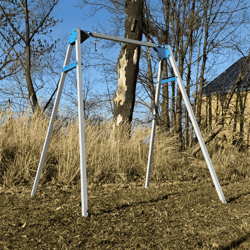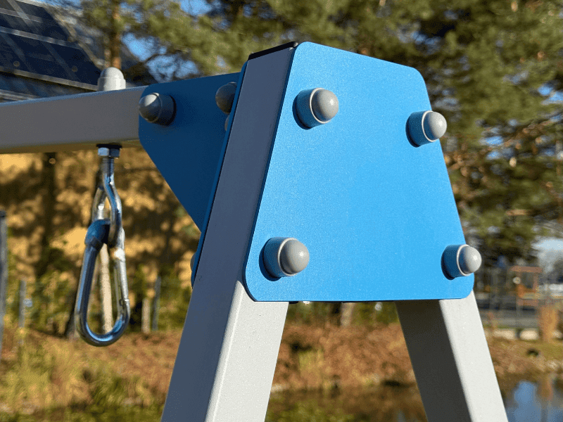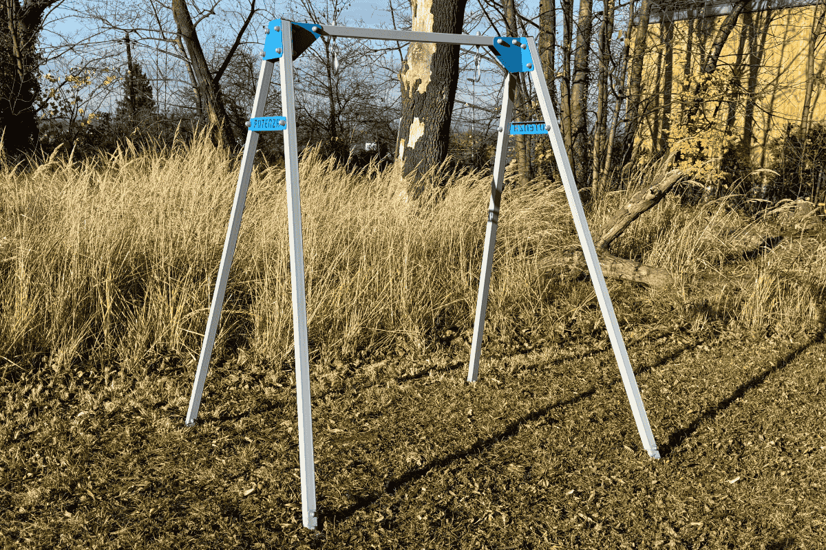 Stelaż huśtawki został wykonany z profilu stalowego ocynkowanego ogniowo w rozmiarze 40×40 mm.