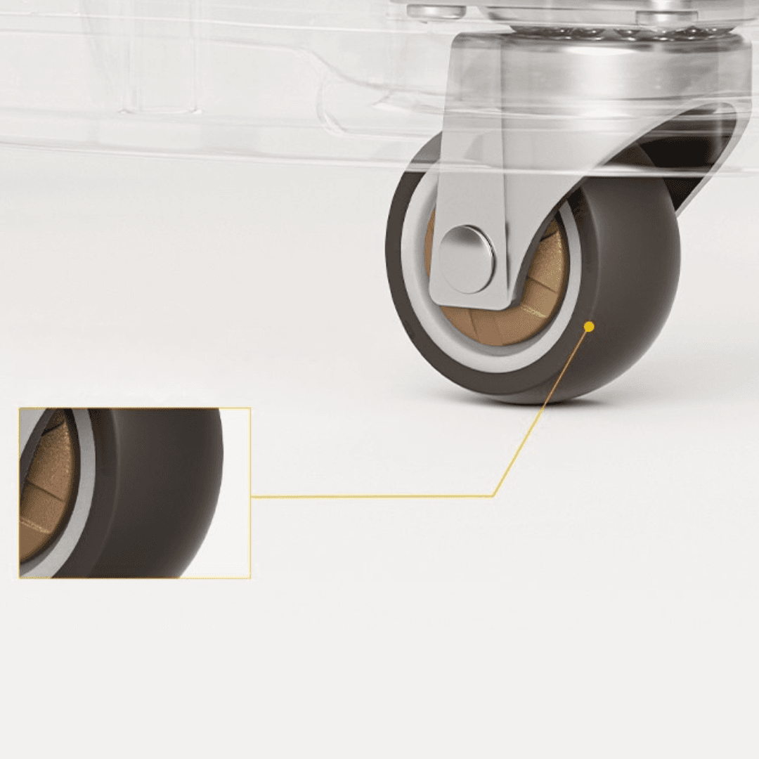 Kółka wykonane zostały z wysokogatunkowego poliuretanu (PU), a ich konstrukcja została dodatkowo pogrubiona, co znacząco zwiększa ich odporność na uszkodzenia i ścieranie. Dzięki temu nie rysują powierzchni i są wyjątkowo ciche podczas jazdy.