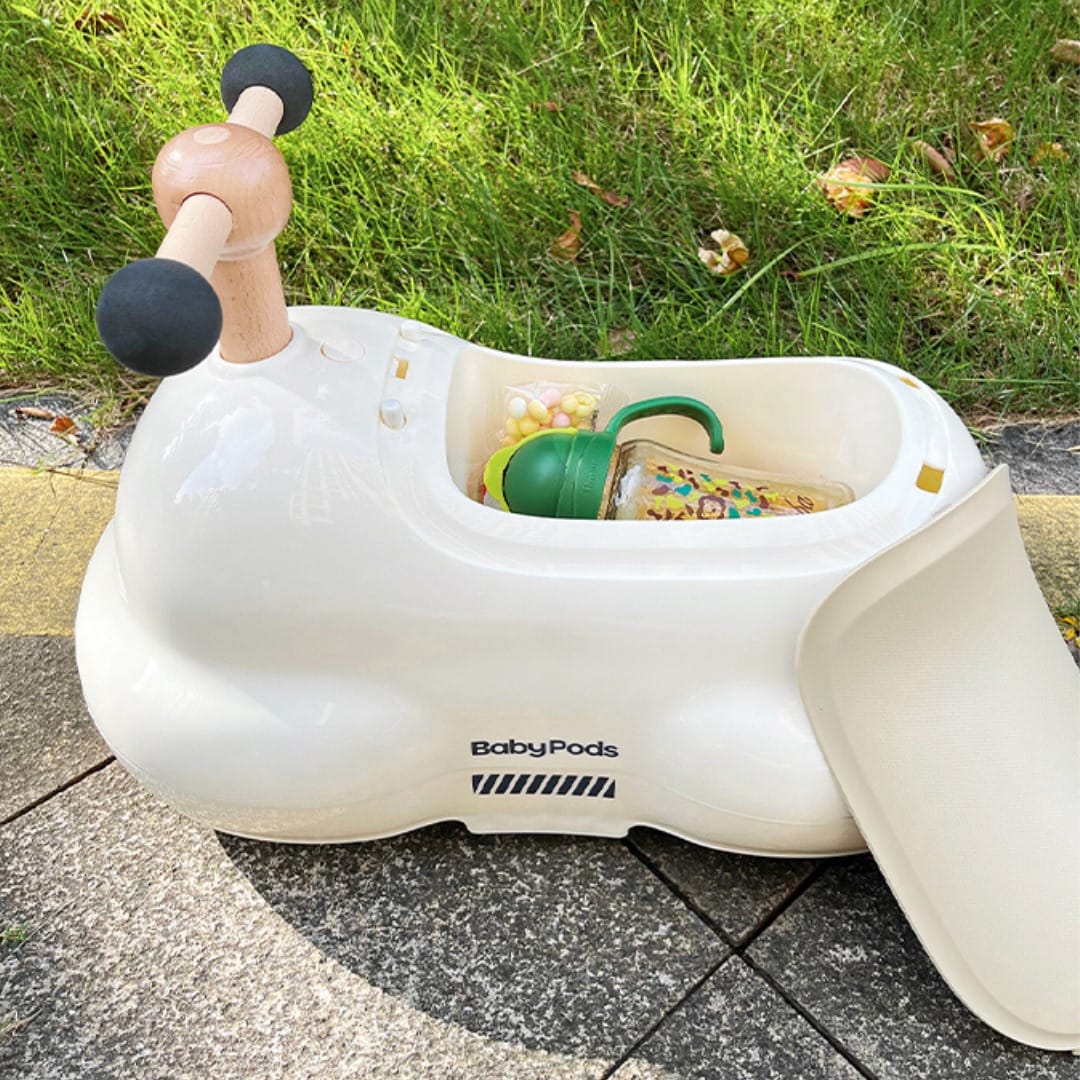 Funkcjonalny schowek umieszczony pod wygodnym siedziskiem to praktyczne miejsce na przechowywanie najważniejszych dla malucha przedmiotów. Jego obsługa jest niezwykle prosta: wystarczy nacisnąć jeden przycisk, aby schowek płynnie się otworzył. Rozwiązanie to zwiększa wygodę oraz pozwala na szybki dostęp do zawartości bez konieczności używania siły.