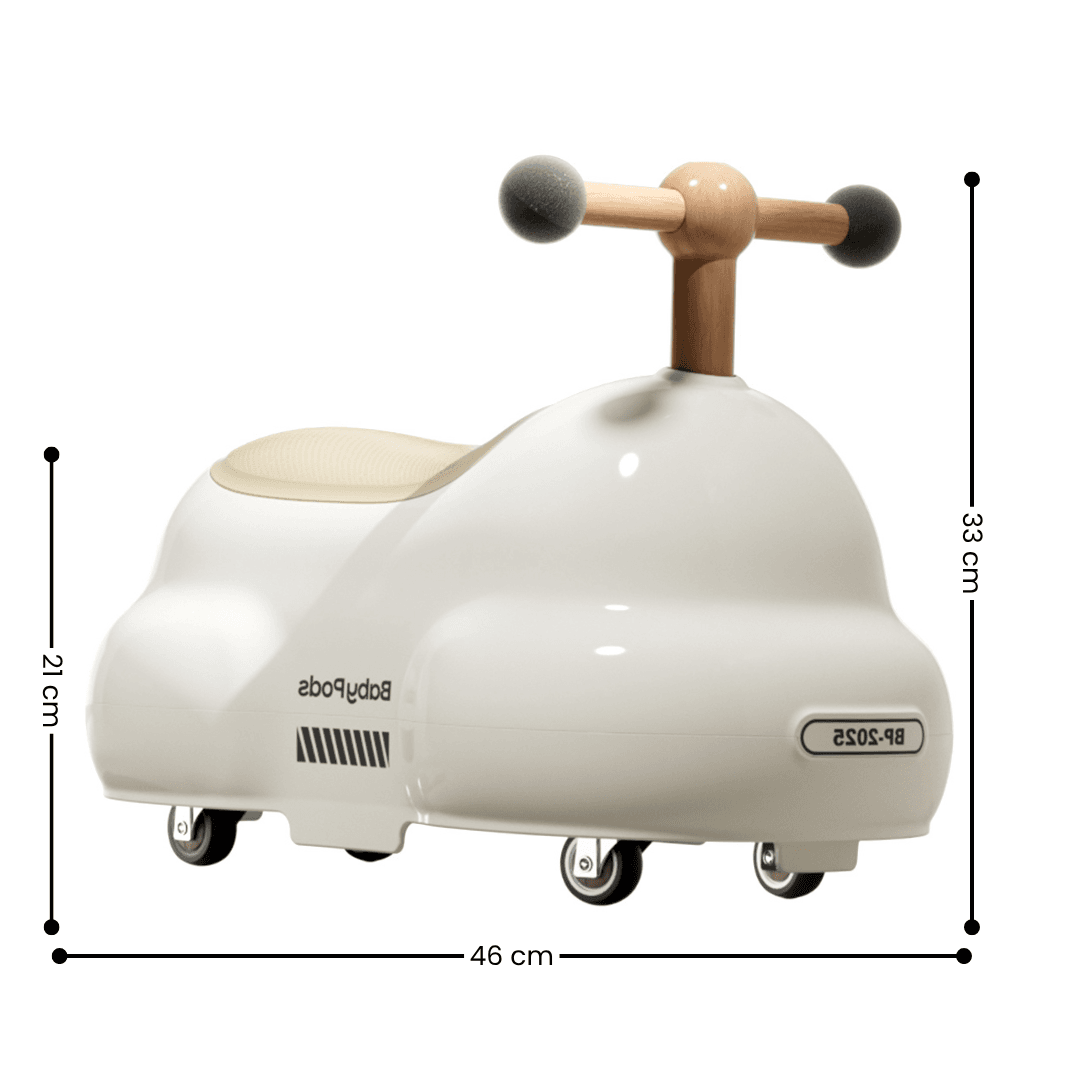 Jeździk Peanut to zabawka, która wpływa pozytywnie na rozwój fizyczny dziecka, jednocześnie kształtując jego koordynację ruchową.