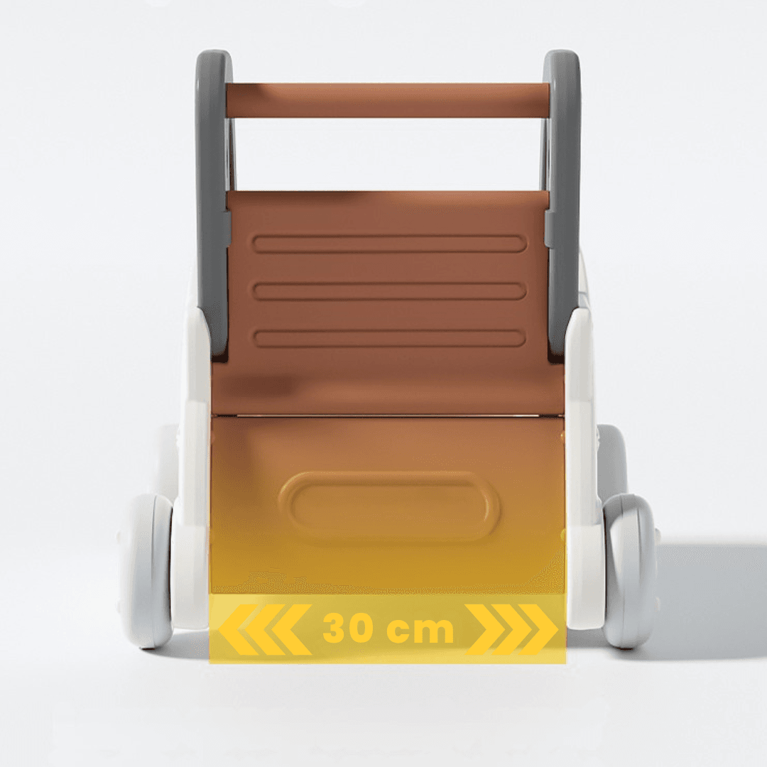 Dodatkowo pchacz posiada pojemną przestrzeń do przechowywania i przewożenia zabawek, co czyni go idealnym towarzyszem codziennej zabawy.