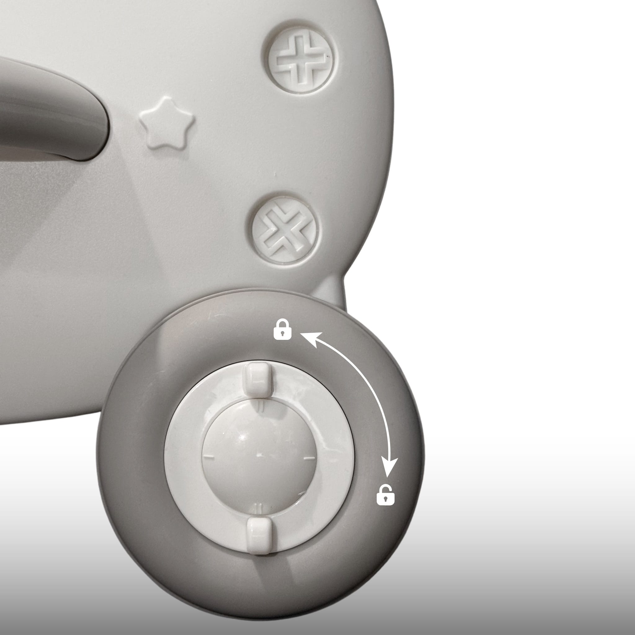 Pchacz MICCOO posiada dwa biegi prędkości. Dzięki temu pchacz rośnie wraz z umiejętnościami dziecka i zapewnia bezpieczną zabawę na każdym etapie: