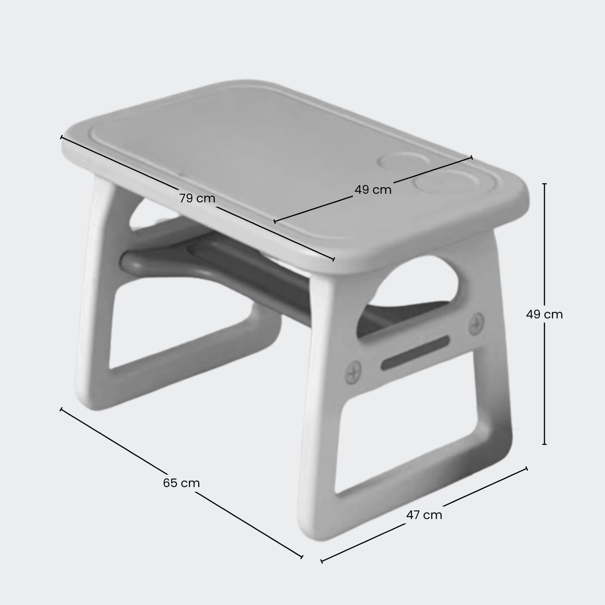 Stwórz swojemu dziecku idealne miejsce do nauki, zabawy i posiłków. Prezentowany zestaw to połączenie minimalistycznego designu z maksymalną praktycznością. Dzięki stonowanej kolorystyce meble idealnie wpisują się w nowoczesne wnętrza oraz mogą być wykorzystywane również na zewnątrz – w ogródkach, altankach czy na balkonach.
